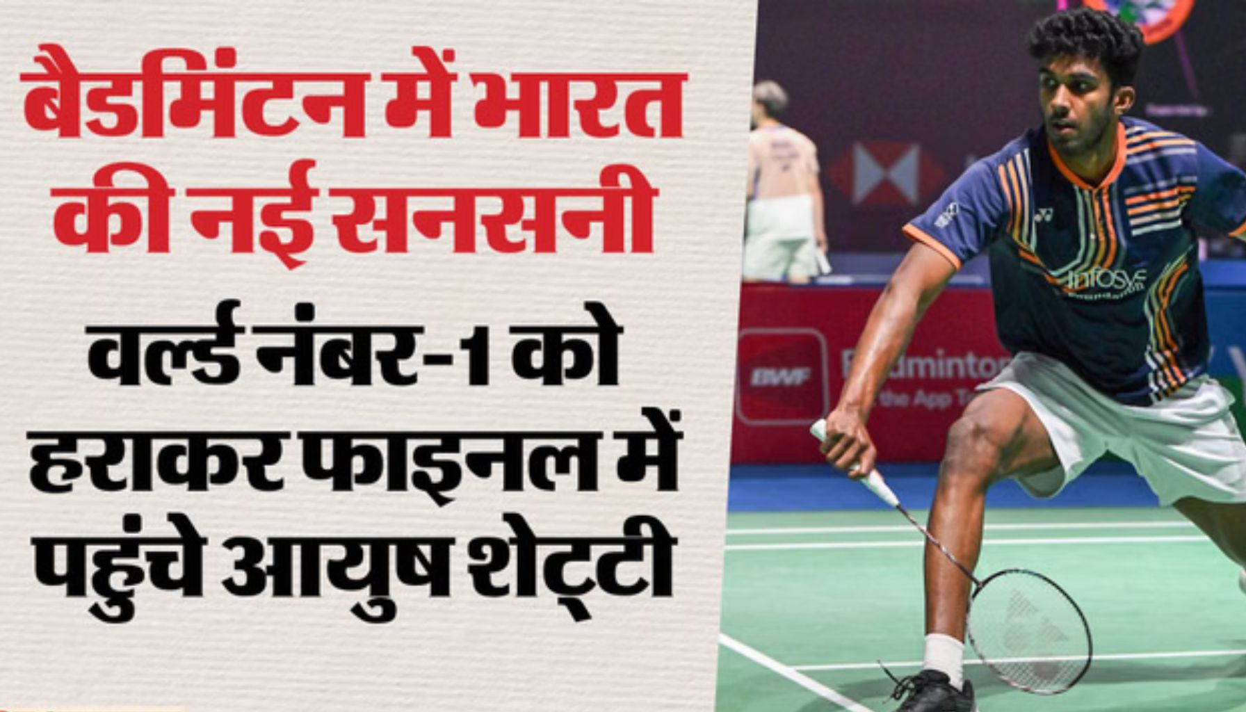 भारतीय: बैडमिंटन के लिए एक ऐतिहासिक और गर्व का क्षण सामने आया है। 20 वर्षीय युवा शटलर Ayush Shetty ने बैडमिंटन एशिया चैंपियनशिप में ऐसा कारनामा कर दिखाया, जिसने पूरे खेल जगत को चौंका दिया। उन्होंने सेमीफाइनल में मौजूदा वर्ल्ड नंबर-1 Kunlavut Vitidsarn को हराकर फाइनल में जगह बना ली।