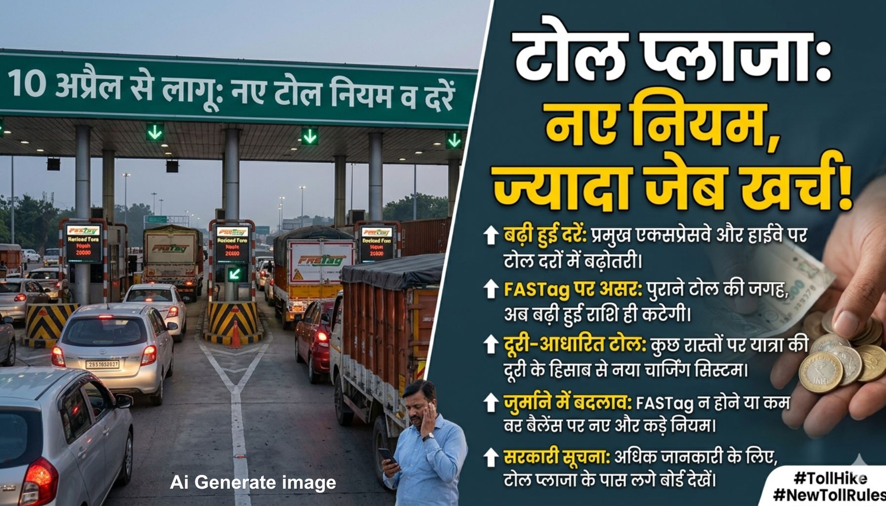 टोल प्लाजा पर कैश पेमेंट बंद करने और FASTag को अनिवार्य बनाने का फैसला यात्रियों के लिए बड़ा बदलाव है। जहां इससे सफर आसान होगा, वहीं नियमों का पालन न करने पर जेब पर अतिरिक्त बोझ भी पड़ सकता है।